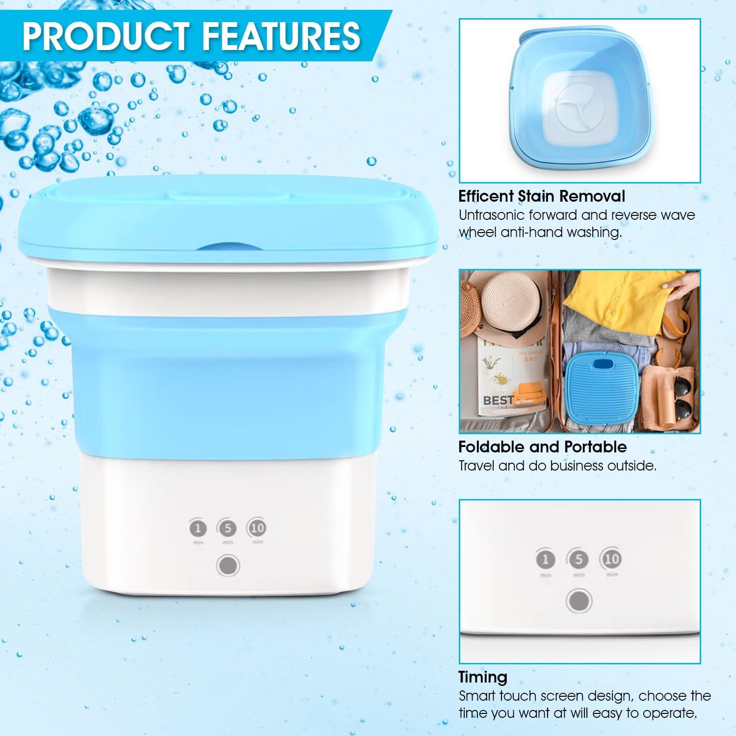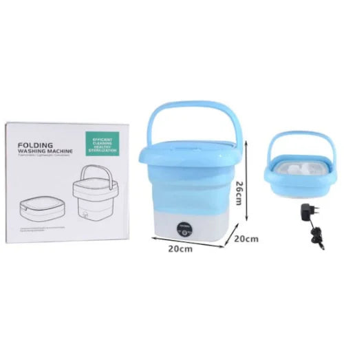 La mini lavadora plegable es un dispositivo portátil y compacto, ideal para quienes buscan una solución práctica y eficiente para lavar ropa en espacios reducidos o durante viajes.