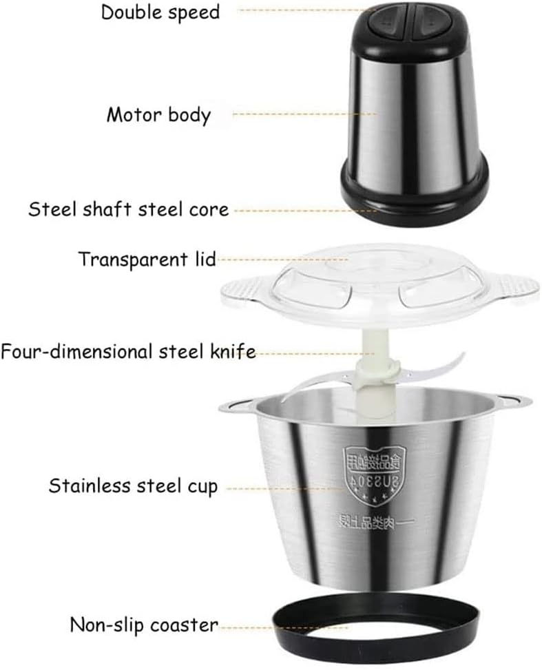 Material de acero inoxidable 304: es el mejor material de dispositivo, fuerte, duradero y fácil de limpiar. Nunca se romperá por caídas o colisiones, y su peso es más ligero que el vidrio. El tazón, la tapa y la cuchilla de la picadora de carne se pueden lavar con un lavavajillas automático.
