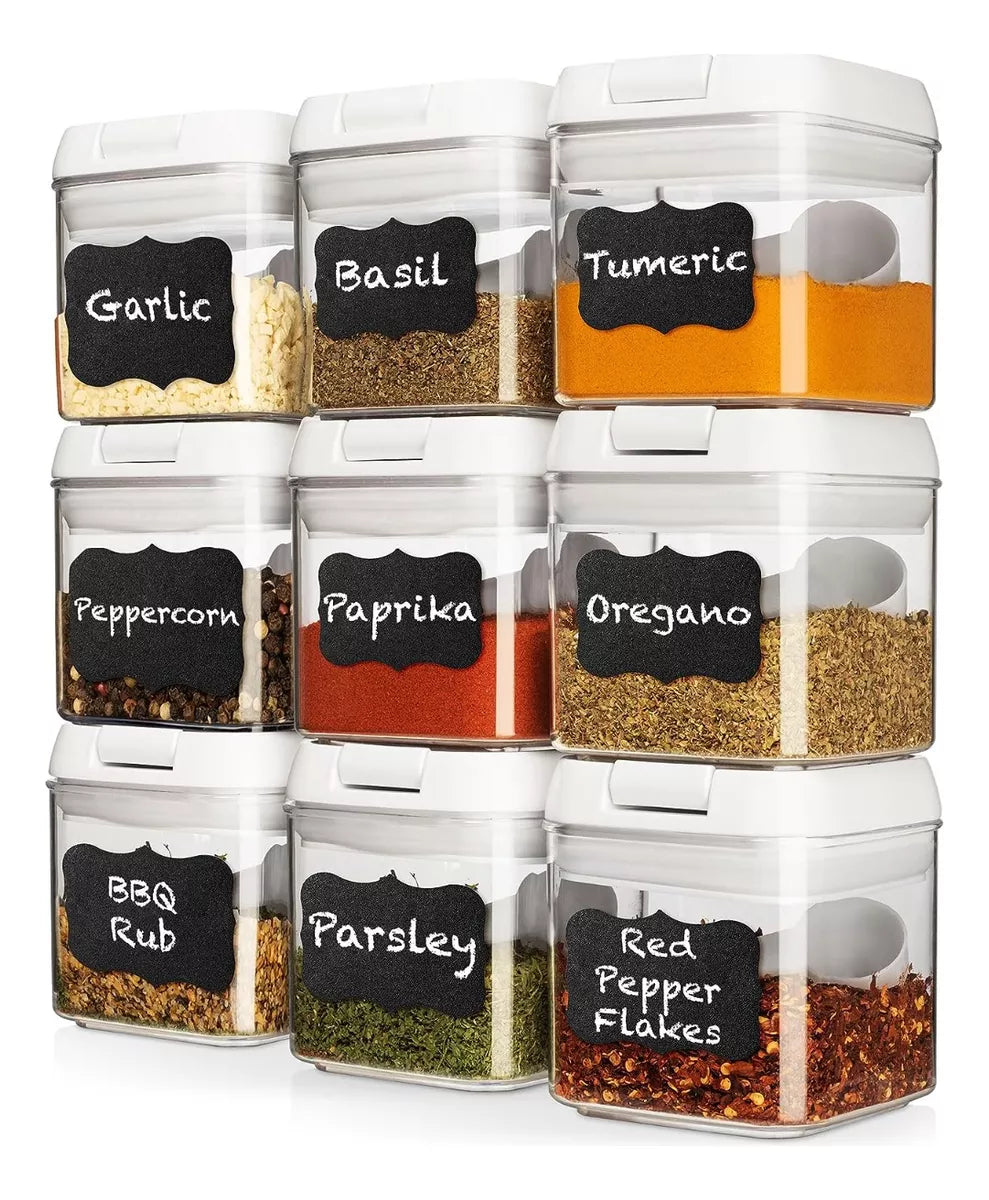Maximiza la frescura: estos recipientes de almacenamiento son ideales para mantener tus especias, hierbas, té y café frescos. Su sistema de bloqueo hermético crea un sello que evita el olor y las fugas.