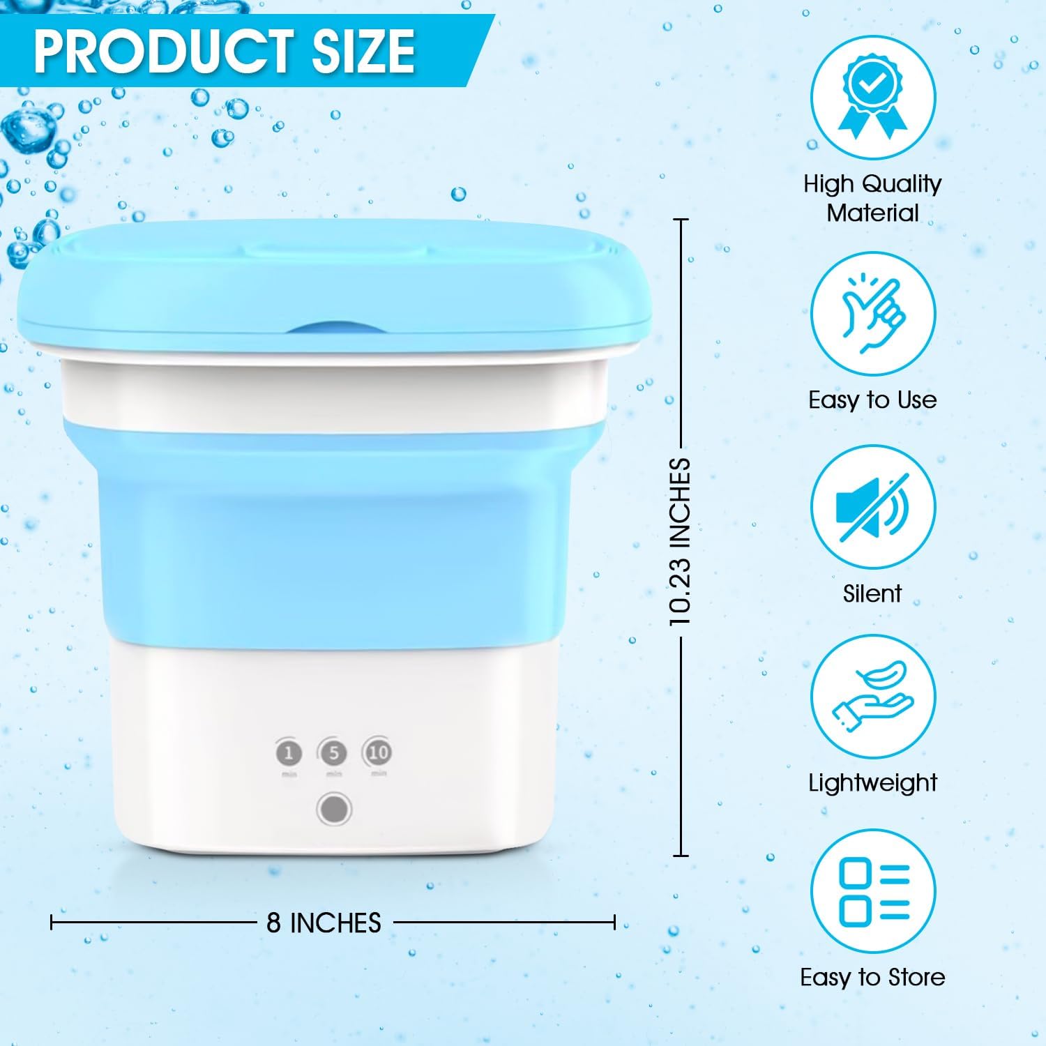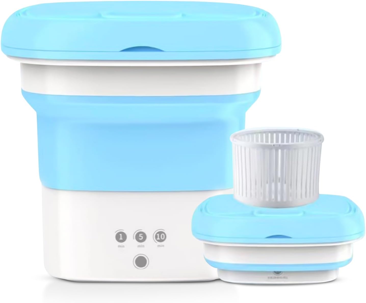 La mini lavadora plegable es un dispositivo portátil y compacto, ideal para quienes buscan una solución práctica y eficiente para lavar ropa en espacios reducidos o durante viajes.